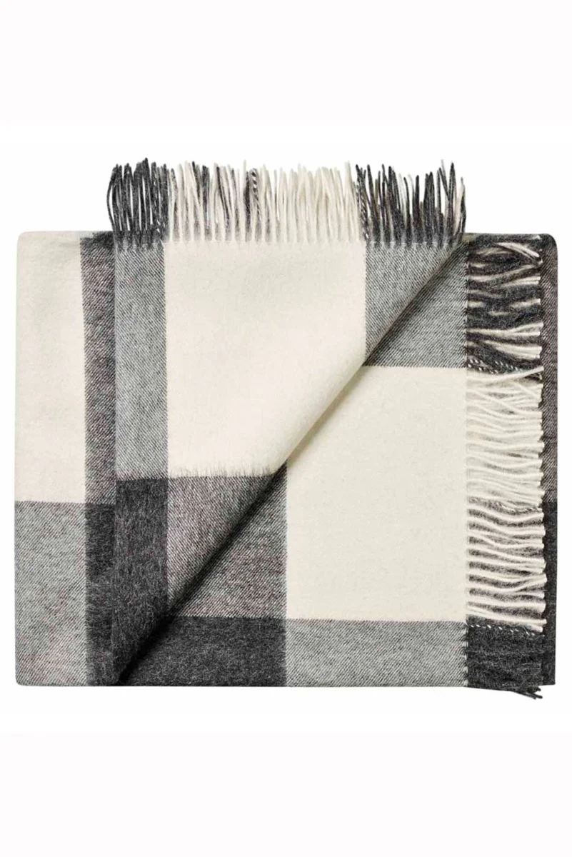 A perfect blend of timeless style and supreme comfort, the Charcoal Checkered Baby Alpaca Blanket. Made from 100% baby alpaca this blanket brings warmth and sophistication to any space. Featuring a classic checkered pattern in shades of charcoal and ivory, this piece offers both visual appeal and an irresistibly soft feel. Its sustainable craftsmanship and hypoallergenic nature make it a luxurious yet conscious choice for everyday coziness.